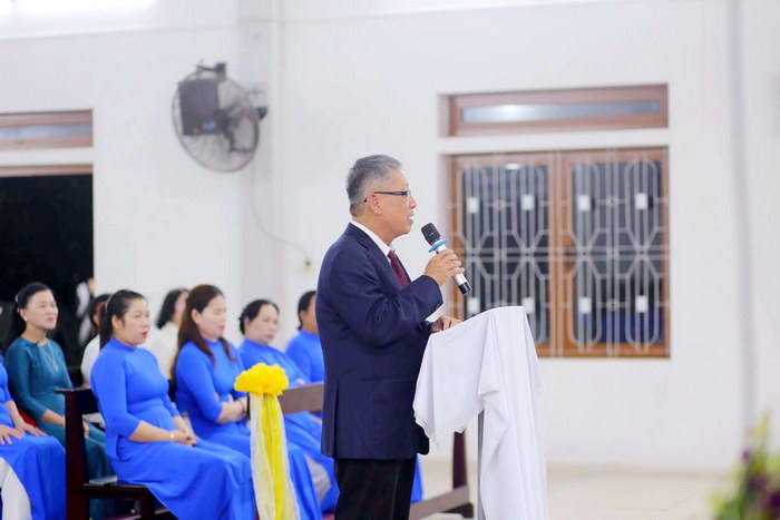 Sau lời nguyện hiệp lễ, trưởng lớp Đức Long đại diện HT67 cám ơn Quý Cha và giáo xứ Cự Lại đã tạo điều kiện cho Lớp được về đây cùng với cộng đoàn hiệp dâng thánh lễ Bổn mạng thật sốt sắng và long trọng. Anh cũng chia sẻ những tình cảm tích cực về sự phát triển của xứ đạo, sự hiếu khách của cộng đoàn và tính tình vui vẻ, dễ mến của những con người mà đời sống vốn gắn liền với biển cả thiên nhiên bằng cả một niềm cậy tin phó thác.