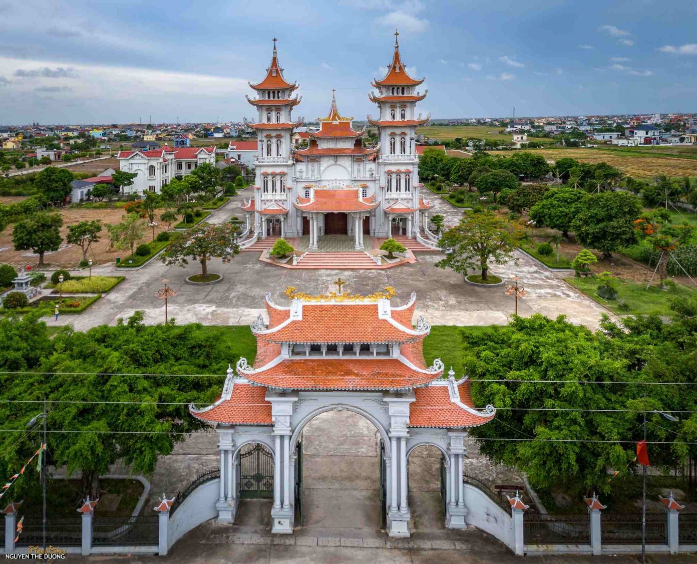 Nơi đây nổi bật với kiến trúc giao thoa Đông – Tây độc đáo, gam màu trắng cùng mái ngói đỏ ấm áp,