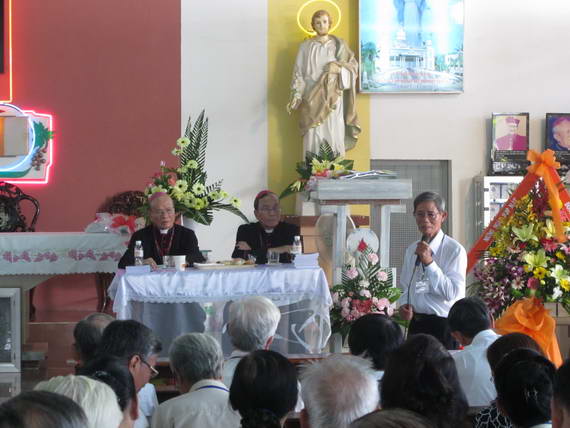 Hôm qua, thứ Bảy 26-11-2011, tại nhà thờ Mông Triệu, số 78 đường Nguyễn Cửu Vân, Phường 17, quận Bình Thạnh, Sàigòn. Đức Tổng Giám Mục Têphanô Nguyễn Như Thể, Đức Cha Phụ tá FX Lê Văn Hồng, cha Phan Xuân Thanh, cha Phan Hưng, cha Lê Quang Viên và một số linh mục thuộc giáo phận Huế đã có buổi gặp gỡ thân mật từ 9g đến 14g với một số linh mục gốc Huế và khoảng 150 bà con đồng hương Tổng Giáo phận Huế, trong đó có anh em CCS Huế phía Nam. Đặc biệt, ngày họp mặt còn có sự hiện diện của Tổng Phụ trách Dòng Thánh Tâm, Cha Antôn Huỳnh Đầy, và các tu sĩ dòng Thánh Tâm, các nữ tu...