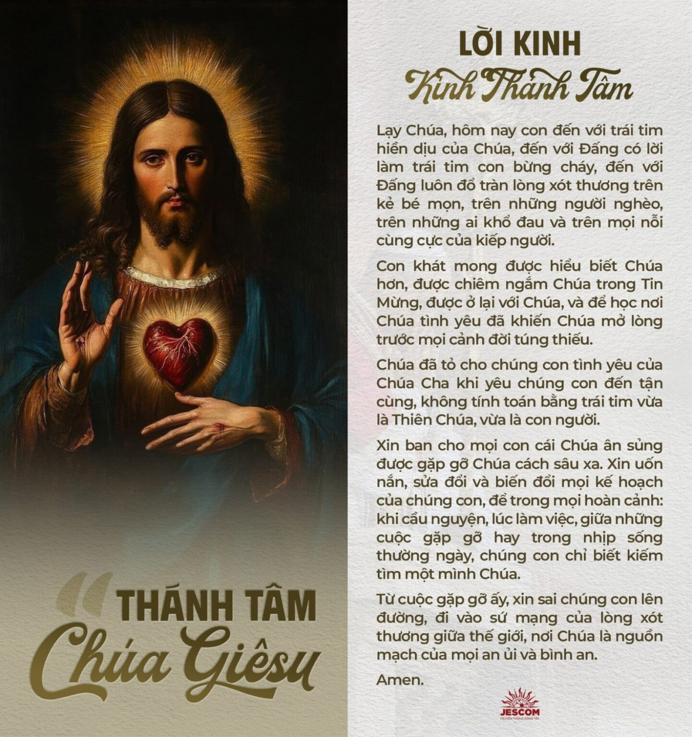 Thánh Tâm Chúa Giêsu là trung tâm của đức tin Kitô giáo, nơi tình yêu Thiên Chúa Cha được mạc khải cách trọn vẹn nhất. Đó là tình yêu có khả năng làm tan chảy những trái tim chai đá, tình yêu mời gọi hối cải và ban ơn tha thứ vô điều kiện. Hôm nay, chúng ta không chỉ chiêm ngắm Thánh Tâm Chúa Giêsu mà còn được mời gọi noi gương Người, để trái tim của chúng ta cũng trở nên giống trái tim của Người – một trái tim biết yêu thương, tha thứ, và phục vụ. Đặc biệt, chúng ta hãy tha thiết cầu nguyện cho các linh mục, để các ngài luôn được tràn đầy tình yêu của Thánh Tâm Chúa Giêsu, trở thành những mục tử đích thực, mang lòng thương xót của Thiên Chúa đến cho mọi người.