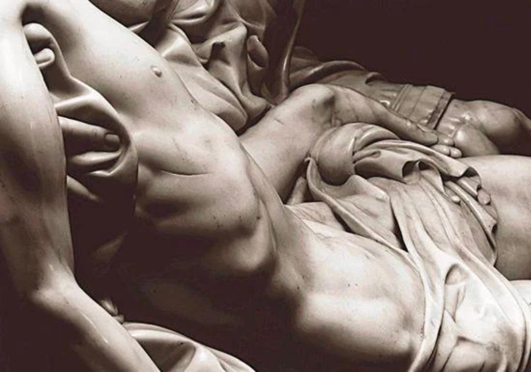 Điều khiến Pietà vượt khỏi mọi khuôn khổ điêu khắc thời Phục Hưng chính là sự kết hợp giữa kỹ thuật và trực giác tinh thần. Đức Mẹ mang gương mặt trẻ hơn nhiều so với tuổi của một người mẹ đang bế thi thể con trai. Michelangelo cho rằng sự thuần khiết không đo bằng năm tháng; cái đẹp của linh hồn không già đi, dù thế giới có đổi thay. Nhìn lâu hơn, người xem nhận ra vòng cung của thân Đức Mẹ, cách bàn tay mở ra như muốn nâng đỡ cả thế giới, và đường gấp áo phủ xuống ôm lấy cơ thể Chúa Kitô – tất cả đều được Michelangelo sắp đặt để dẫn ánh nhìn, giữ cảm xúc và nâng người xem đến một khoảng tĩnh lặng hiếm có.