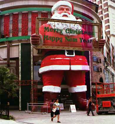 3. Tượng Ông già Noel lớn nhất, cao 15,6m và rộng 11 m, đã xuất hiện sừng sững tại lối vào Tanglin Mall, Singapore từ 11/1996 tới 1/1997. Bức tượng nặng 2,5 tấn và làm bằng kim loại, xốp.