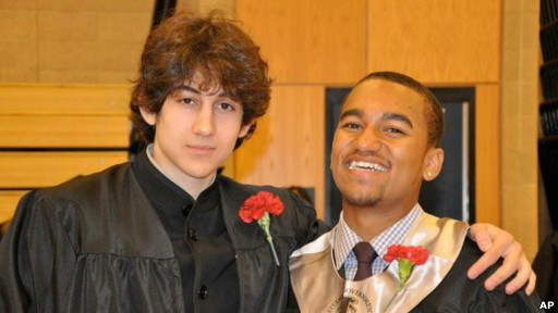 Ảnh nghi phạm Dzhokhar Tsarnaev (trái)