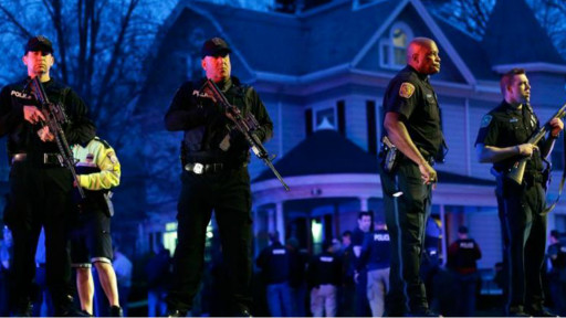 Cảnh sát đang bao vây khu vực này, nơi mà họ cho là nghi phạm thứ hai, Dzhokar Tsarnaev đang lẩn trốn. Chiếc thuyền ở sân sau là nơi nghi phạm trốn và bị một người phát hiện.