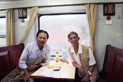 Sáng sớm hôm sau, tôi gọi lại cho niên trưởng mời sang căn tin uống café, ai ngờ niên trưởng ở toa 1 sát ngay chỗ tôi ngồi, anh em gặp nhau vui quá vì có người đồng hướng cùng đồng hành. Niên trưởng nói rằng không thể tin được tôi lại có mặt trên cùng chuyến tàu. Hai anh em cùng hàn huyên, tâm sự bao chuyện vui buồn… Ngồi trên toa tàu, tôi có dịp nôn nao nhớ đến chuyến tàu chợ hơn 30 năm trước, trốn vé vào Sàigòn, tôi đã nhảy lên nóc tàu và đã ôm cột khói cho đỡ lạnh suốt cả hành trình, còn bi chừ, ngồi lai rai đàng hoàng trong căn tin hỏa xa thoải mái. Thời đó tôi mới đôi mươi.
