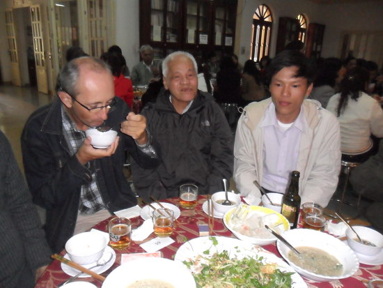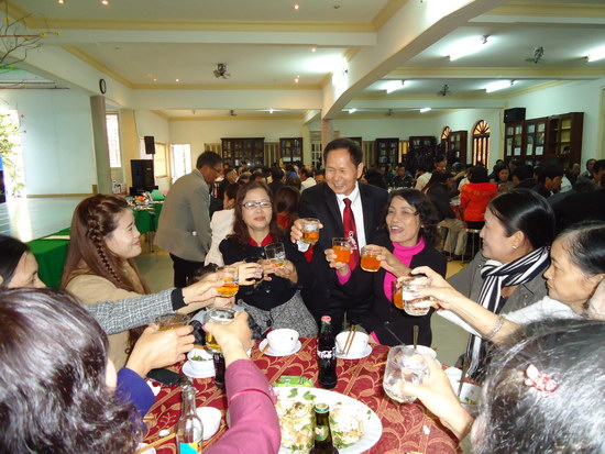 Bên cạnh những món ăn đậm đà quê hương, anh em, phu nhân và luôn cả con cháu chan hòa tình huynh đệ. Có người đã thân thiết, có người vừa quen biết, nhưng từng câu hỏi han, chuyện trò, ly nước, chai bia khơi mào cho những niềm vui hy vọng đầu năm.