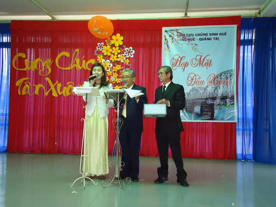 Hai MC Nguyễn Úy và Ái Linh là người chị họ của tôi đã khá thành công trong việc điều khiển chương trình tiệc văn nghệ Mừng Xuân với hò lôtô bốc quà rộn ràng.