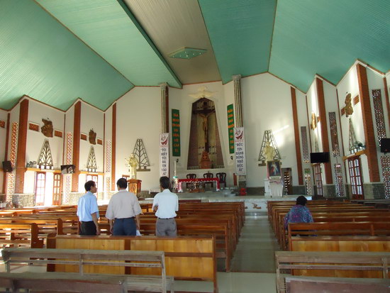 Tiền đường cao vút, mang đầy đủ bản sắc dân tộc với những hình ảnh giã gạo, hạt lúa nuôi sống con người, hình con trâu, ngôi sao sáu cánh tượng trưng cho thần linh. Ngày đó, Đức cha Minh đã giới thiệu với cha Hải về cha tân quản xứ JB. Nguyễn Văn Sỹ SVD sẽ đến nhận bài sai coi sóc giáo xứ Tầm Ngân này. Đó là linh mục nhạc sĩ Fa Thăng thuộc Dòng Ngôi Lời.