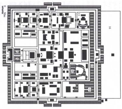 1. Ngọ Môn; 2. Sân Đại triều; 3. Điện Thái Hoà; 4. Hiển Lâm Các;