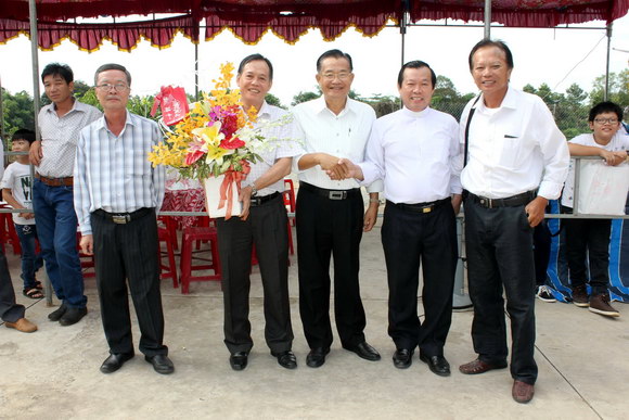 Trên lẳng hoa trang trọng do BĐD Phía Nam có hai câu thư pháp tặng ngài: