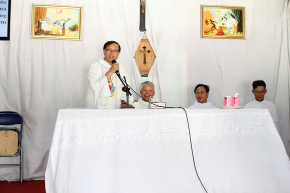 Sau Thánh lễ, cha sở Phaolô Nguyễn Chí Thiện đã thay mặt cho cộng đoàn sở tại nói lời cám ơn đến hội CCS Huế. Sau đó ngài tâm sự với chúng tôi bằng những lời lẽ chân thành và đầy bức xúc, ngài đã không kìm hãm được sự xúc động mà từ nhiều năm nay, ngài bảo chúng tôi chưa hề khóc, đến hôm nay ngài đã bật khóc… Khi ngài mới về đây, dựng lên một mái tôn để dâng lễ, thì 11 giờ đêm, 100 người đã được lệnh đến tháo dỡ sạch sành sanh… và cả đến bây giờ, dù đã cho phép xây dựng nhà thờ nhưng lại làm khó cấm cản thế này thế nọ, cho rằng là đất nông nghiệp nên không được đào xới di dời… Trời đất ơi, đào móng với hơn hàng trăm khối đất mà không xúc đi thì làm sao đây? Hơn nữa, không phải xúc bỏ, mà gửi tạm ở đâu đó, rồi đợi làm móng xong, mới lấp đất trở lại…