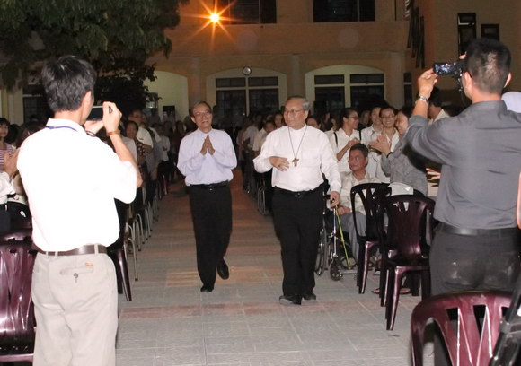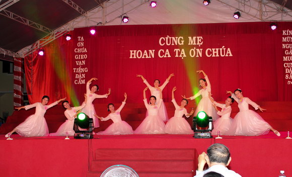 Đêm văn nghệ với chủ đề Cùng Mẹ Hoan Ca Tạ Ơn Chúa được ĐCV chuẩn bị kỹ càng. Sân khấu được thiết kế bài bản và rộng lớn do một đơn vị chuyên tổ chức sự kiện lớn, bầu khí khẩn trương lo sắp sẵn mọi thứ và mọi khâu cuối cùng. Trước giờ khai mạc, chúng tôi đã thấy Đức Tổng PX, TGM TGP Huế bước vào hội trường. Cha Phó GĐ ĐCV Phêrô Phan Tấn Khánh thay mặt ĐCV đọc diễn từ khai mạc, ngài chào đón Đức Tổng PX, quý Đức Cha, quý cha, quý hội dòng, quý khách ân nhân và mọi người tham dự.