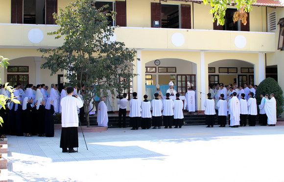 Từ Lavang về tới Huế, chúng tôi tranh thủ vệ sinh, tắm rửa và vội lên ĐCV dùng cơm tối. Trước giờ ăn, cùng các thầy vào nhà nguyện chầu Mình Thánh Chúa. Không khí ĐCV dù đang là thời điểm cao trào của việc chuẩn bị ngày lễ khánh thành và cũng là lúc quý thầy và các hội dòng… rục rịch tới tập dượt cho đêm văn nghệ hoành tráng… nhưng bầu khí vẫn giữ được tĩnh lặng bình thường như mọi ngày. Sau lời kinh tối chung, lúc này không gian như một bầy ong vỡ tổ, các cha cũng như các thầy nói chuyện ầm ĩ, họ nói gì với nhau… như chính chúng tôi cũng đã từng ở trong nhà Chúa hàng thập niên trước cũng từng nói rất nhiều chuyện, có điều khi đó chúng tôi mới mươi, mười hai…lứa tuổi chỉ biết tranh cãi nhau là chính…