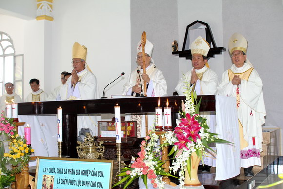 Thánh Lễ Tạ Ơn rất long trọng và sốt sắng được cộng đoàn dân Chúa tham dự, trong đó có đoàn nhỏ bé “cái bang”chúng tôi được vinh hạnh hiệp dâng những tâm tình lên Thiên Chúa, tha thiết cầu xin ban nhiều ơn lành cho ĐCV, cho công việc đào tạo được gặt hái thành quả tốt đẹp nhất.