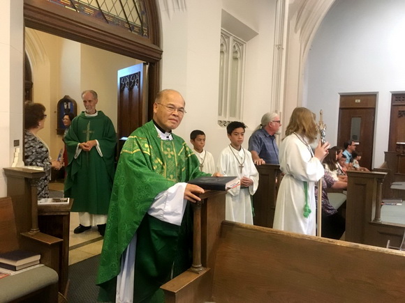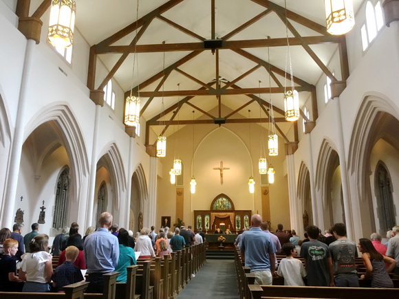 Nhà thờ không đông người. Các hàng ghế quỳ không kín hết chỗ ngồi. Vì mùa hè, nhiều người thường đi du lịch, đóng trại hay xuyên bang...Như gia đình Nhật Loan đang qua hồ McConaughy ở Nebraska đóng trại với Đoàn TNTT của GXVN, câu được nhiều cá bông lau kịp chiều nay đem về đãi khách. Như út Nguyễn Trí Nghị hôm qua 15/7 đua xe đạp giải STP dài 330 cây số (205 miles) đạp vượt núi đồi đèo dốc và đồng bằng từ Seattle về Portland. Rồi hôm sau lái xe qua du lịch Calgary, Canada.