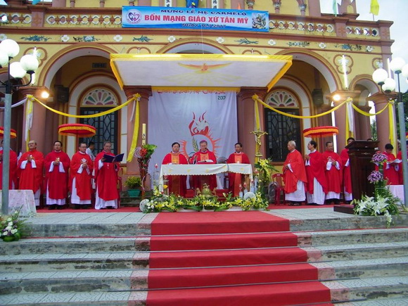 Ngày 16/7 cũng là Lễ kính Đức Mẹ Camêlô, bổn mạng giáo xứ Tân Mỹ của chúng tôi ở quê nhà. Nằm trước cửa biển Thuận An, Huế, Tân Mỹ xưa kia là địa danh của pháo đài trấn giữ có tên Cồn Cỏ hay Cồn Lũy.