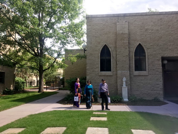 Từ hơn 20 năm qua, hằng tuần tôi đều có dịp lái xe đi ngang qua nhà thờ này, nhưng không ngờ phía sau nhà thờ là khuôn viên rộng rãi với trường học và nhiều cơ sở khang trang. Bên kia con đường nhỏ ngập lá me bay là nhà thờ Montview Boulevard Presbyterian Church còn đồ sộ hơn.