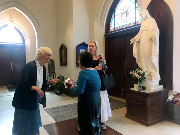 Điều mà chúng tôi không ngờ là cha xứ Chris Hellstrom, quý vị trong Ban Phụng Vụ và mọi giáo dân nơi đây đều rất cởi mở và thân thiện. Các em nhỏ gọi là Nhóm Thiên Thần hồn nhiên, vui vẻ, tích cực giúp chúng tôi đặt các tờ flyers trên những hàng ghế ngồi trong nhà thờ. Điều này dễ hiểu, vì nền giáo dục công giáo luôn dạy học sinh tinh thần phục vụ.
