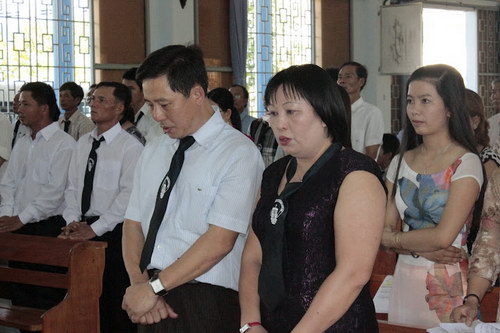 Vào lúc 8g00, Thánh Lễ khai mạc với ý lễ: Tạ ơn, cầu cho các ân sư, các anh em đã khuất và đặc biệt cầu nguyện cho các cặp đôi hôn nhân mừng 30 năm của Cần-Lài, và 25 năm của Cường-Triều. Cả lớp trang phục chỉnh tề, mọi người đều đeo ca-ra-vat có lo-go của lớp trang trọng đón đoàn đồng tế gồm cha sở, cha phó Ba Ngòi, cha Bá cố vấn làm chủ tế. Đám rước với Thánh Giá nến cao từ tiền đường tiến vào nhà thờ.