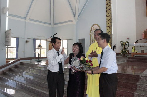 Sau buổi họp cuối cùng, chúng tôi đến thăm cha cố vấn tại giáo xứ Hòa Nghĩa, ngài vừa được bề trên giao chức vụ quản Hạt cùng lúc với cha Lê Minh Cao HT67. Nhà xứ tuy nhỏ so với Ba Ngòi, nhưng với bàn tay chăm sóc của cha sở trở nên tươm tất, thuận lợi cho việc mục vụ của giáo xứ. Cha cố vấn tiếp đãi hết sức nhiệt tình, một bữa tiệc chu đáo đầy đủ và trên cả tuyệt vời, đó là sự ưu ái chúng tôi cảm nhận được về tình huynh đệ ngài dành cho chúng tôi.