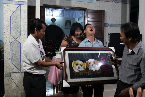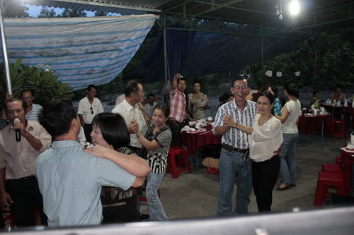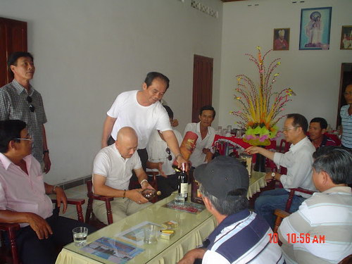 Anh em ban đại diện lớp đến thăm bà cố cha Vinh và cha Bá, cũng như ba mạ của bạn Lê Văn Phúc HT71 đang định cư ở Hoa kỳ. Điểm đến thăm cuối ngày là đại gia đình của Cần-Lài, bố mẹ và anh chị em, các cháu trong nhà đón tiếp chúng tôi hết sức niềm nở, trọng thị…Một bữa tiệc mừng đã được chuẩn bị chu đáo, trước đó giàn karaoke 6 số phục vụ hết công suất cho quý phu nhân trổ tài ca hát và những chai tequila với kiểu uống liếm mu tay (muối và chanh) được quý ông nhấm nháp thưởng thức như những chàng cao bồi mexico sành điệu. Bầu không khí càng về đêm càng nhộn nhịp bởi những bước nhảy đồng quê, vui là chính, trẻ già, nam nữ đều lắc lư theo điệu nhạc…
