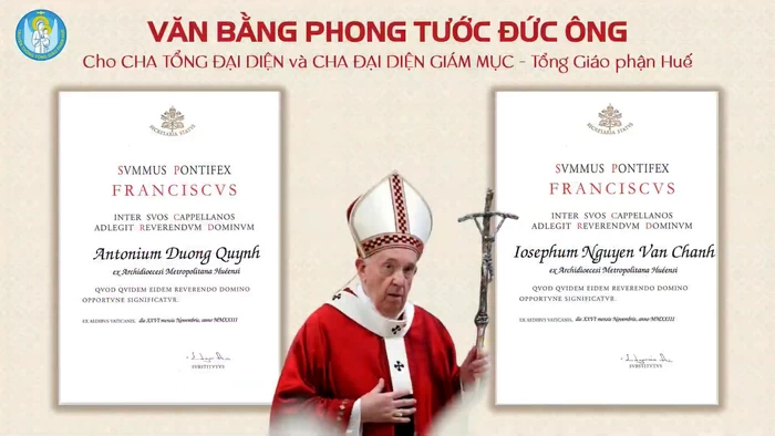 Đức Thánh Cha Phanxicô đã ban tước Đức Ông cho cha ANTÔN DƯƠNG QUỲNH, Tổng Đại diện TGP Huế, và cha GIUSE NGUYỄN VĂN CHÁNH, Đại diện Giám mục TGP Huế.
