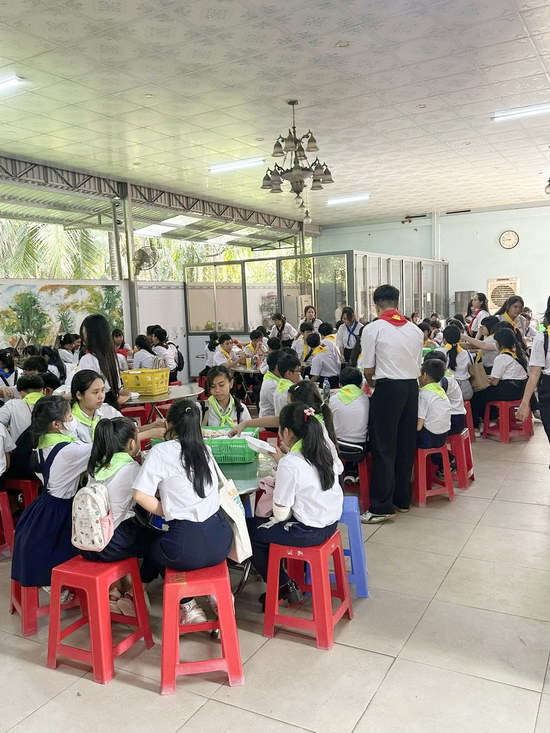 Sau lễ thiếu nhi 7h30, có đến 500 thiếu nhi được giáo xứ chăm lo ẩm thực chu đáo. Nhìn các cháu tập trung tại nhà ăn lớn được các cô chú phụ trách tiếp đồ ăn sáng vui như đàn ong vỡ tổ.