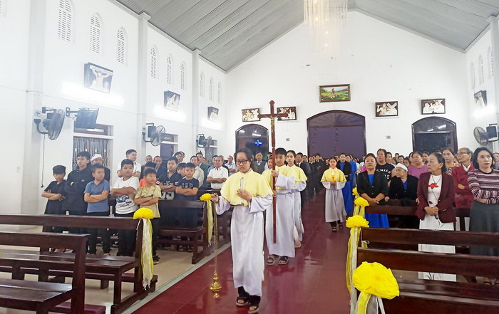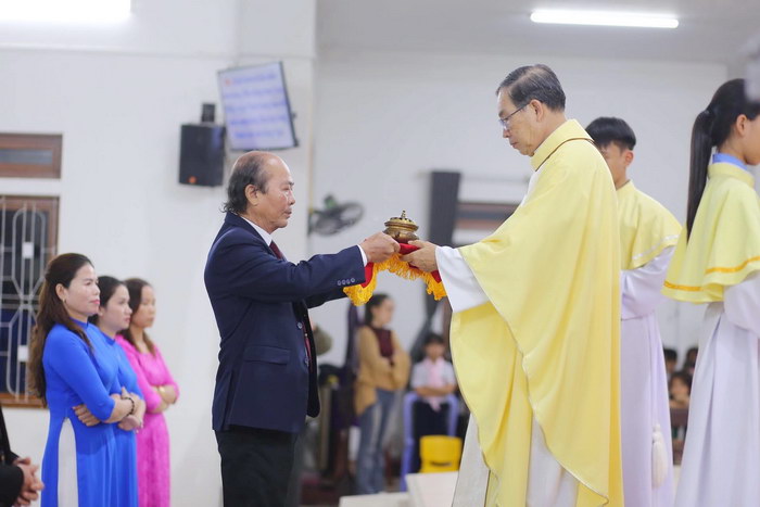 Phần phụng vụ Thánh thể bắt đầu với đoàn dâng lễ, gồm đại diện HĐGX và thầy Thắng dâng hương. Sau đó thánh lễ tiếp tục trong bầu khí thánh thiêng và trang trọng.