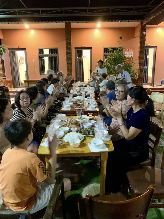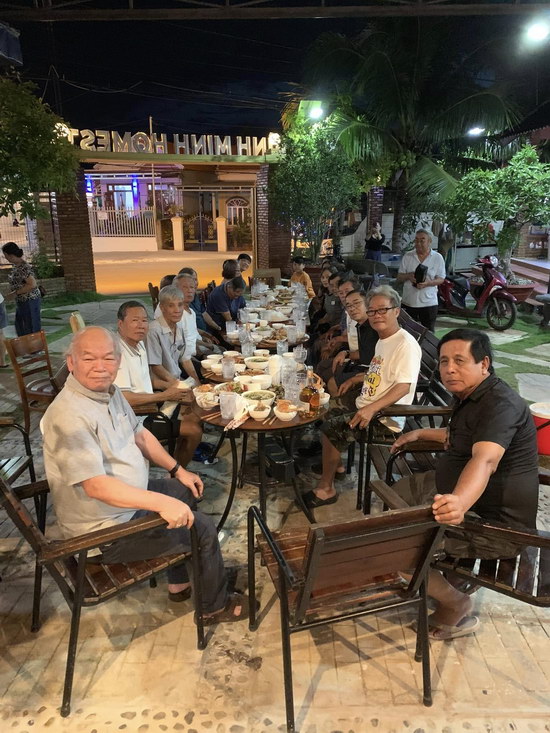 Và khi chiều đến, nắng chiều vừa kịp tắt, người của Homestay và quý chị HT69 cùng nhảy vào bếp, mỗi người một việc, chỉ sau nửa canh giờ là mọi sự đều hoàn tất, một tiệc barbecue ngoài trời trong một khu du lịch đặc sắc, riêng một góc trời, vừa chan hòa tình cảm huynh đệ đoàn viên, 32 anh chị em nối thành một dãy bàn hiệp thông. Sau đó tới phần karaoke tự biên tự diễn, thoạt đầu cha Chiếm với giọng hát mượt mà khai mạc bằng bài ‘Không tên’ của Vũ Thành An, tiếp theo là các ca sĩ HT69: Hữu Hội, Phương Thân, Trương Khoa, Dương Học, Phụng xì dầu…