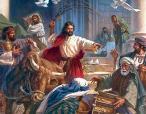 Các môn đệ Chúa Giêsu khi chứng kiến việc Thầy mình thịnh nộ trước sự kiện người ta biến đền thờ thành nơi buôn bán, đã nhớ lại lời Kinh Thánh: “Vì nhiệt tâm lo việc Nhà Chúa, mà tôi đây sẽ phải thiệt thân”. Một cơn thinh nộ đúng nghĩa bằng việc lấy dây làm roi đánh đuổi người buôn bán chiên bò, lật nhào bàn ghế và hất tung tiền của những người đổi bạc. Quả là to gan, nếu không là tên phạm thượng thì cũng là phường phá hoại. Cần phải nghiêm trị nếu không sẽ mất hết luật lệ, mất hết truyền thống, tôn ti…