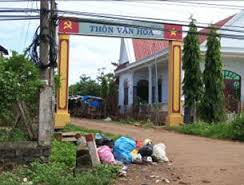 Một cán bộ lãnh đạo cấp tỉnh về thăm một thôn vừa đạt danh hiệu “thôn văn hóa”.