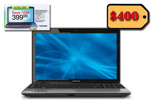 Laptop của hãng Toshiba với màn hình 15.6”, trang bị bộ vi xử lý Intel Core i3 thế hệ thứ 2 (Sandy Bridge), bộ nhớ lên đến 6 GB RAM và ổ cứng 500 GB. Với cấu hình máy khá mạnh, lại được cài sẳn hệ điều hành Windows 7 Home Premium bản quyền, thì mức giá $400 quả thật khá hấp dẫn (giảm $230 so với giá bình thường và khá mềm so với thị trường tại VN) cho người dùng có nhiều nhu cầu.