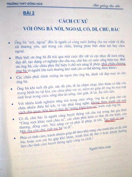 Nhiều bậc phụ huynh đã rất bức xúc khi phát hiện ra một cuốn sách mang tên: “Tập bài đạo đức” dành cho học sinh trường THPT Đồng Hòa (Kiến An, Hải Phòng) có nhiều nội dung ngô nghê, kiến thức sai trầm trọng.