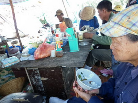 Buổi trưa, những người này tranh thủ ăn cơm ngay trên bãi rác đầy ruồi nhặng, mùi hôi thối rồi tiếp tục cuộc đào bới.