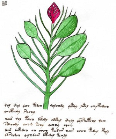 Cuốn sách dài 240 trang, được viết bằng một bảng chữ cái mà chúng ta chưa từng biết tới, bên cạnh đó còn có những hình ảnh to, rõ ràng và đầy màu sắc khắc họa những loài cây bí ẩn, chưa từng được biết tới, những hình ảnh về thiên văn, vũ trụ và cả những người phụ nữ đang tắm.