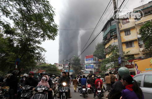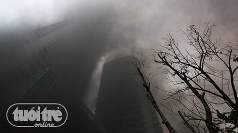 Từ xa hàng cây số vẫn thấy cột khói khổng lổ bốc lên từ tòa nhà - Ảnh: Việt Dũng