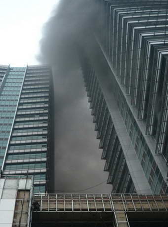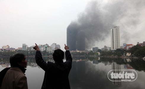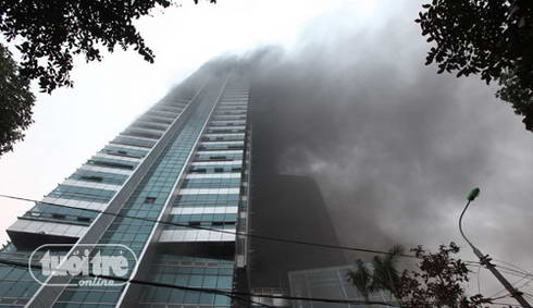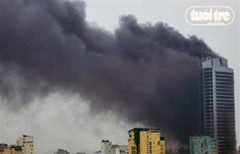 Khoảng 16g20 chiều nay 15-12, hai tòa tháp đôi (một tòa cao 29 tầng, một tòa cao 33 tầng), của Tập đoàn Điện lực Việt Nam (EVN) bắt đầu phát hỏa và bốc khói mù mịt.