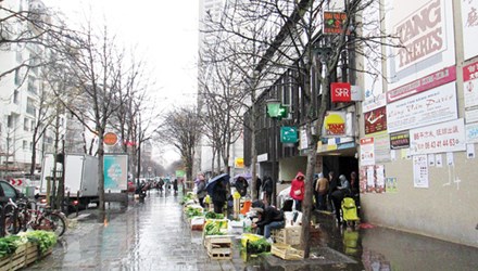 Những “gánh hàng rong” ở Paris vẫn còn. Bất chấp pháp luật, họ đứng bán nhan nhản ở khu châu Á quận 13 lập thành một chợ “liều” trên vỉa hè.
