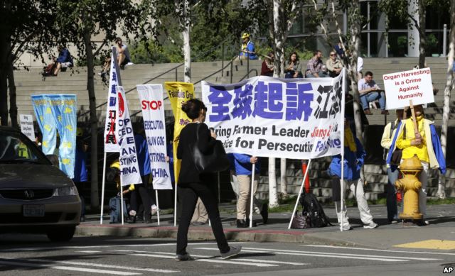 Những người biểu tình Pháp Luân Công chống Tập Cận Bình là sát nhân