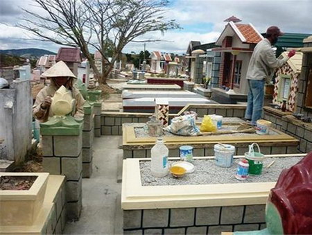 Câu chuyện bàn rộng đến phong trào Việt Kiều về quê xây lăng mộ cho thân nhân, cho tổ tiên, đến nỗi có nhiều làng thi đua xây cất cho nguy nga, cho to lớn. Thấy lăng mộ người khác lớn hơn, thì đập cái cũ ra, xây lại cho lớn, cho đồ sộ hơn. Có nơi người ta đặt tên là Làng Ma, vì toàn cả lăng mộ.