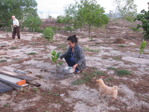 trồng cây xuống 30 cm và mỗi sáng đều phải tưới rất đậm. Bà thường làm việc
