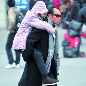 Ông Hùng Quý Tài người Quý Châu (Trung Quốc) đã cõng theo mẹ già 81 tuổi lặn lội đường sá xa xôi từ một thôn ở huyện Toàn Tiêu, An Huy (Trung Quốc) đến nhà chị gái ở tận Liêu Thành, Sơn Đông ăn tết, khiến nhiều hành khách trên xe cảm động đến rơi lệ.
