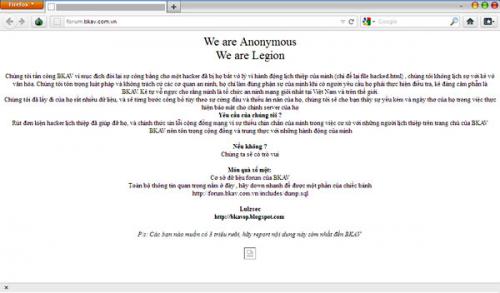 Hình ảnh được hacker cho là đã "deface" được diễn đàn Bkav.