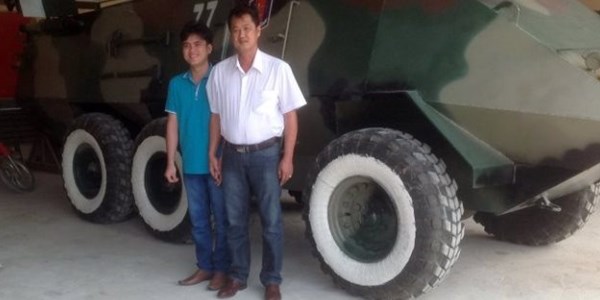 | Đại tướng quân hai lúa Trần Quốc Hải kể chuyện chế tạo xe bọc thép ![]() Hai cha con ông Trần Quốc Hải (nông dân chế tạo máy bay ở Tân Châu, Tây Ninh) bên chiếc xe bọc thép mới chế tạo Ông Trần Quốc Hải, nông dân ở huyện Tân Châu, Tây Ninh vừa được Quốc vương Campuchia trao tặng Huân chương Đại tướng quân vì thành công trong việc chế tạo xe bọc thép tại nước bạn. Chuyện làm xe học thép ông kể không khác gì canh bạc. Làm được thì có tiền, không làm được bỏ tiền túi ra đền. Ông nông dân gan góc dám làm. Xe bọc thép vận hành thành công, ông thành...Đại tướng quân hai lúa. Ông Trần Quốc Hải không phải người xa lạ. Ông chính là “Hai Lúa” Tây Ninh từng nổi đình, nổi đám trên khắp cả nước khi tự chế trực thăng từ năm 2006. Tuy nhiên, trước đó ông cũng đã nổi tiếng với một loạt phát minh máy móc. Là một nông dân rặt nhưng số sáng chế của ông Hải nhiều đến mức khó thống kê hết. Đánh cược với xe bọc thép Có thể kể những phát minh của ông Hải như chế tạo như rơ moóc tự hành (có cả láp, thắng hơi, ben), giàn cày cải tiến (tăng công suất cao gần gấp đôi so với giàn cày cũ nhưng tiết kiệm được 1/3 nhiên liệu); máy bơm xác mì từ hầm chứa lên xe tải, máy thổi lá cao su, máy bón phân tự động, máy thu hoạch mủ cao su... và gần đây nhất là máy trồng mì (sắn) tự động. Danh tiếng của ông Hải vang danh. Sản phẩm máy móc của ông được nước bạn đặt hàng. Ông Hải xuất ngoại nhiều lần để chuyển giao công nghệ. Trong một lần chuyển giao kỹ thuật máy trồng mì tại Lữ đoàn 70, ông phát hiện rất nhiều xe bọc thép xếp xó, không sử dụng được. “Mình nói cho mình thời gian nghiên cứu, bảo đảm sửa chữa được. Nhiều người trố mắt nhìn mình”-ông Hải kể. Tất cả mọi người đều không tin vì dù ông có tiếng phát minh máy móc nông nghiệp nhưng chắc chắn không biết gì về một loại xe quân sự vô cùng phức tạp. Mặt khác, họ cho biết trước ông từng có rất nhiều chuyên gia, kỹ sư của Nga, Ukraina, Việt Nam đã đến sửa chữa. Xe sửa xong vận hành tốt nhưng chuyên gia quay lưng đi thì lập tức hỏng, lại phải đẩy bằng tay vào xếp xó. “Tui nghe tức quá. Quyết tâm làm cho bằng được. Vì họ ngờ vực nên tui quyết bỏ tiền túi ra làm cho họ thấy”-ông Hải hào hứng kể. Chuyện ông nông dân đòi móc tiền túi sửa xe bọc thép gây chấn động, đến tai Tư lệnh Lữ đoàn. Tư lệnh cũng bối rối phải gọi lên Tổng tư lệnh quân đội xin ý kiến chỉ đạo. Cả lữ đoàn hồi hộp chờ. “Mình cũng thót tim chứ. Nhưng lúc đó mình đã tin là sẽ làm được”. Sửa xong, chế tạo luôn xe bọc thép Rất nhanh chóng, khẩu lệnh đồng ý truyền xuống. Không chần chừ, sẵn tiền bán máy móc, ông tự bỏ tiền túi tổng cộng 25.000 USD để sửa xe bọc thép BRDM 2 (do Liên Xô cũ sản xuất)... “Mình may mắn được người ta tạo điều kiện thôi. Tài giỏi mấy mà người ta không lắng nghe, không tin tưởng thì cũng không thể thành công được”- Đại tướng quân hai lúa khiêm tốn nói. Chỉ trong thời gian ngắn, chiếc xe đã có thể vận hành với 25 lít dầu diesel/100 km so với trước đây là 45 lít. Tác xạ nhanh hơn, hỏa lực mạnh hơn so với trước, vòng xoay súng có thể bắn ở cự ly gần hơn so với 150 m của xe cũ, tháp pháo tự động. “Thực chất là động cơ quá nặng nên tốn nhiên liệu và khó vận hành. Mình phải cải tiến các chi tiết động cơ cho phù hợp là được”-ông nói. Chiếc xe bọc thép xếp xó bỗng dưng vận hành ngon trớn. Ông Hải được lữ đoàn 70 giao sửa chữa thêm 10 chiếc xe bọc thép khác. Rất nhanh chóng, với những cải tiến của mình, những chiếc xe tưởng đã thành sắt vụn bỗng hồi sinh, gầm rú trong niềm hân hoan. Quốc vương Campuchia ngay sau đó cấp giấy chứng nhận cho ông Hải và con trai ông, anh Trần Quốc Thanh, là nhà kỹ thuật sửa chữa xe bọc thép BRDM 2 và BTR60PB. “Sửa chữa được rồi nhưng chúng tôi vẫn chưa yên tâm. Thực chất loại xe bọc thép này không phù hợp với điều kiện nước bạn. Chúng tôi lập tức nghĩ đến việc chế tạo xe bọc thép hoàn toàn mới”-ông Hải kể tiếp. Cả một lữ đoàn lại mắt tròn mắt dẹt, nghi ngờ ông nói liều. Ông cười xòa kể, vẫn dùng “chiêu” cũ để thuyết phục: Ông tự bỏ tiền chế tạo. Thành công thì phía bạn phải trả cả công lẫn vốn, thất bại ông chịu toàn bộ chi phí. Lại có cái gật đầu của thượng cấp, cha con ông bắt tay vào làm. Ông cho biết, khác biệt lớn nhất của xe bọc thép BRDM 2 cũ là chỉ phù hợp với môi trường bằng phẳng, khó vận hành ở địa hình dốc, núi đèo. Đó là chìa khóa giải quyết vấn đề. Ròng rã 4 tháng trời tự tìm kiếm cũng như mua sắm trang bị cho chiếc xe mới. Ba tháng nghiên cứu và một tháng chế tạo, cha con ông đã hoàn thành chiếc xe bọc thép với tính năng mới hoàn toàn. Chiếc xe bọc thép “Made by ông Hải” mới với vòng quay tay súng có thể bắn ở 