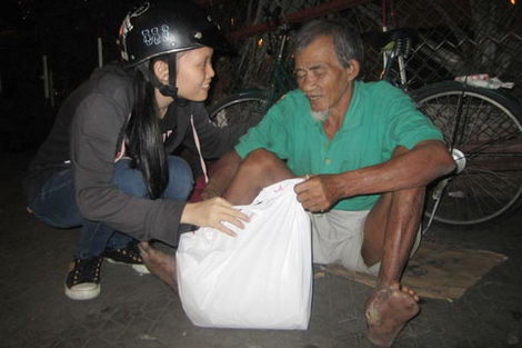 Một chút quà nhưng là cả một tấm lòng. Quà có thể nhỏ đối với những người dư ăn dư mặc nhưng, rất lớn đối với những mảnh đời không nơi nương tựa này. Đêm đã khuya, trời đã lạnh nhưng vẫn không làm chùn bước những người trong nhóm. Cứ thế họ đi hết tuyến đường này đến tuyến đường khác say sưa với công việc thiện nguyện của mình.