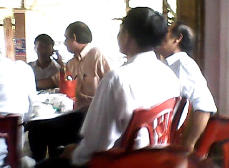 Cảnh tượng chúc tụng, đùa cợt giữa các cán bộ huyện, giữa cán bộ huyện với Giám đốc doanh nghiệp xây dựng nọ liên tục rôm rả. Thậm chí, trong lúc cao hứng những cán bộ huyện này còn yêu cầu một số nhân viên nữ đi vòng quanh bàn lần lượt chúc mỗi cán bộ một chén để làm vui.