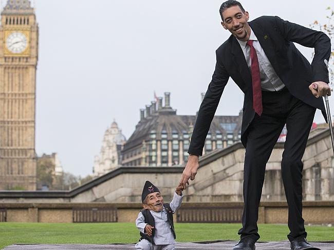 Người cao nhất và người thấp nhất thế giới đều trân trọng nỗ lực của nhau - Ảnh: AFP