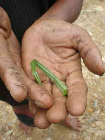 Khoảng 1 giờ sau, bà Bươn trở về và trên tay chỉ một có một bụi cây không thân, lá màu xanh hình bản kiếm dài vài tấc, có củ nhỏ giống như loài địa lan. Chúng tôi săm soi xem liệu đó có phải là cây ngải yêu của bà Bươn không. Anh Minh nói nhỏ: “Chỉ có mình bà Bươn là biết loài cây này sống ở đây, ngoài ra không ai biết cả".
