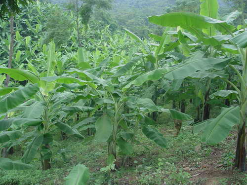 Vườn chuối tây trồng bằng giống nuôi cấy mô năm thứ 2 tại hộ gia đình anh Lộc Văn Nhuệ