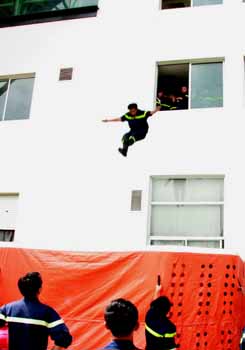 Khi có thang, đệm của lực lượng phòng cháy chữa cháy, cứu hộ cứu nạn đến và được yêu cầu, bạn mới nhảy xuống.